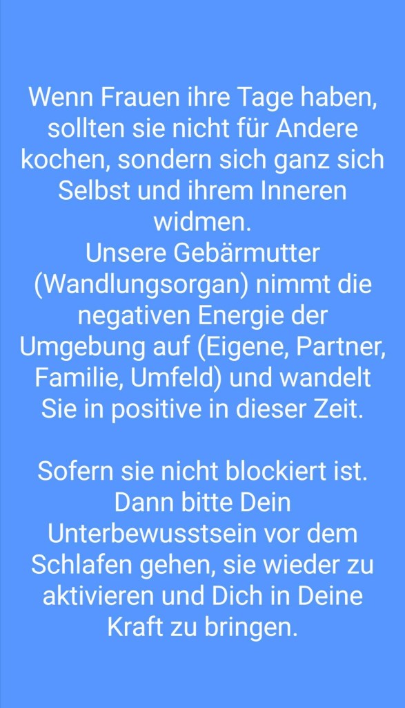 TestamentEine gesunde Frau braucht Feuer und fliesendes Wasser, und sie lädt sich in der Natur auf.