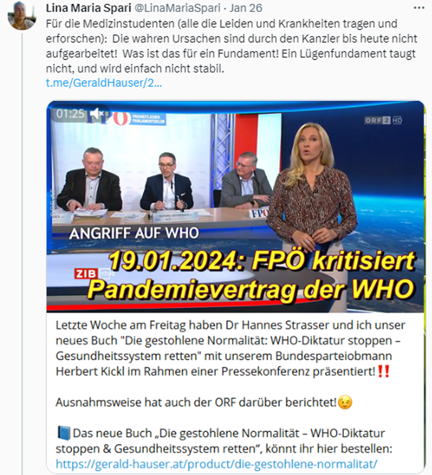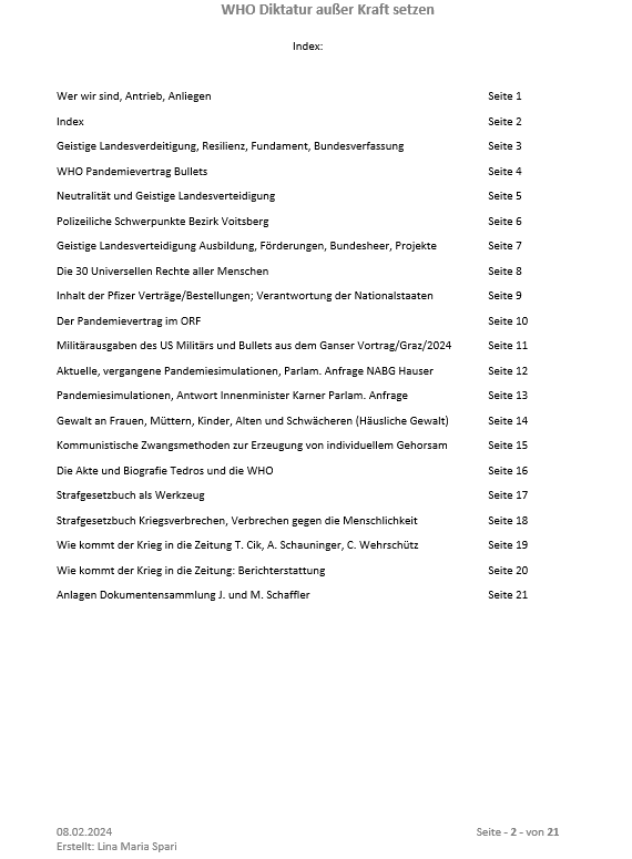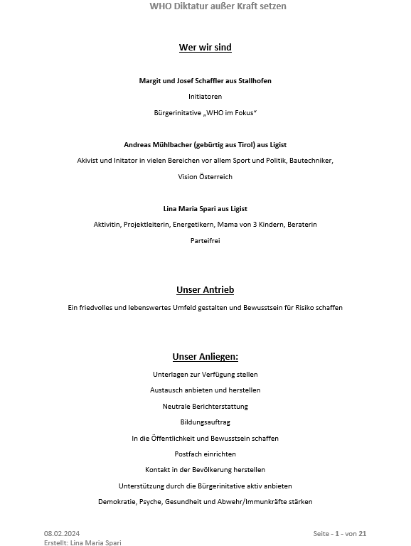 Die beiden WHO Pandemieverträge müssen von der österreichischen Bundesregierung und den Abgeordneten (vom Volk entsandten) zum österreichischen Nationalrat als Verantwortungsträger verhindert werden!
