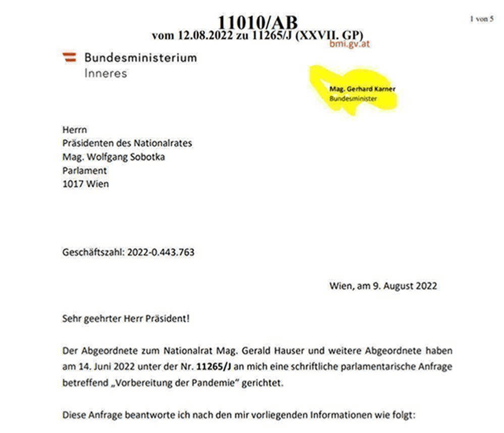 Das kann ich bestätigen, ich habe diese Anfragebeantwortung auch gesehen, ich konnte sie jedoch nicht mehr im Netz einfach so finden (Shadowban), jedoch über die Links des Wikipediaeintrages von Dr. Gerald Hauser.