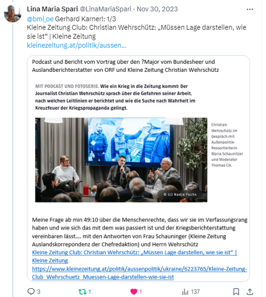 Die Volksanwaltschaft, der entweder die Meta Ebene verwehrt war, oder sehenden und vertuschenden Auges daran beteiligt: https://x.com/LinaMariaSpari/status/1788197774967579018