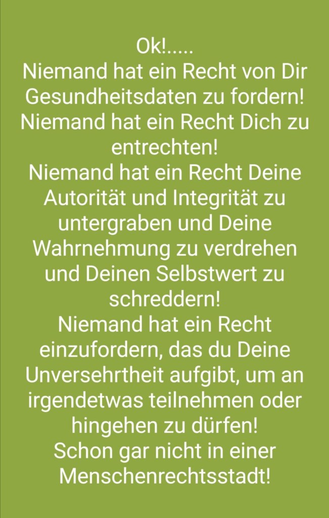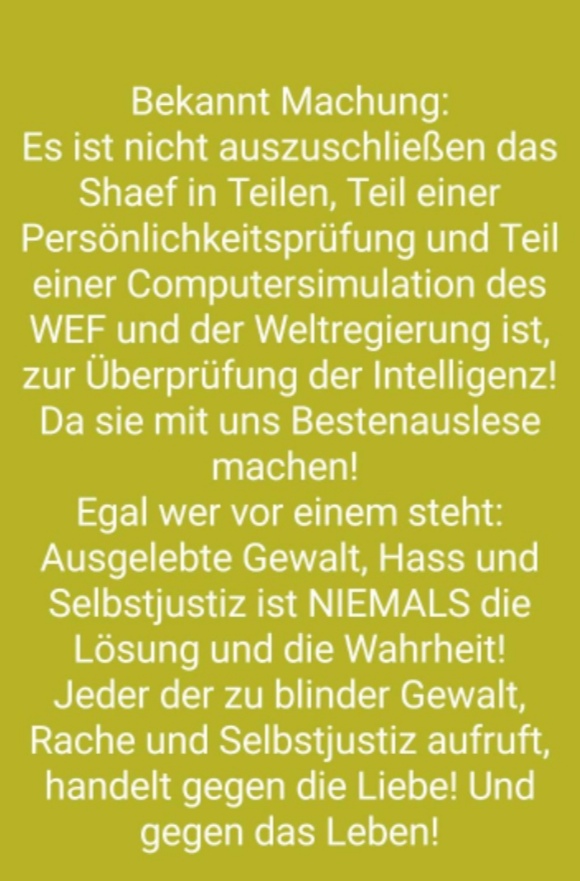 Am Besten ausdrucken und jenen aushändigen die dich kompromittieren möchten und in ihre Psychose und Angsthypnose hineinziehen möchten.