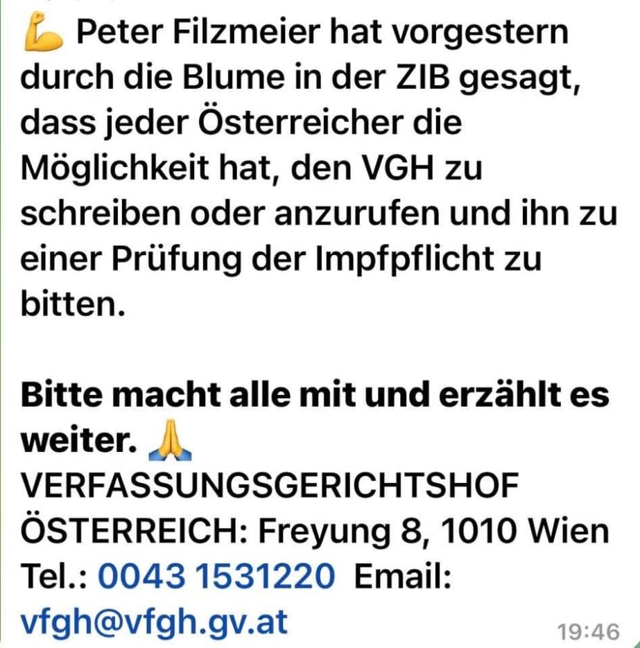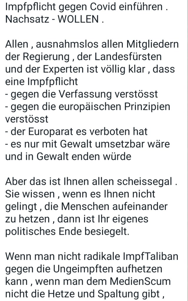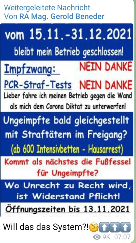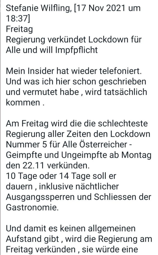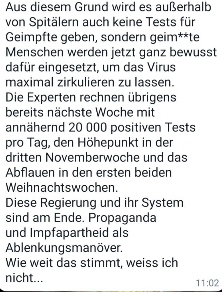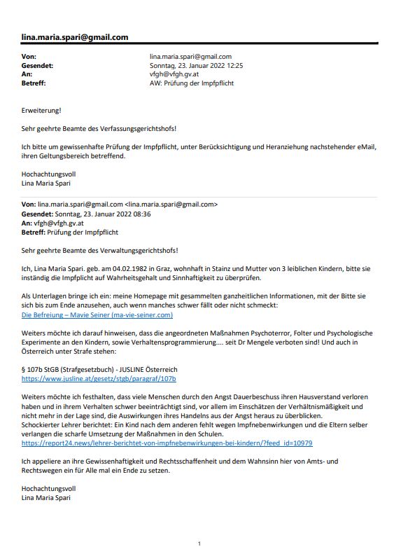 Alle Dokumente Netzfund! Anzeigen an Polizei, Bundesheer und Medien wegen §321 Völkermord wurden eingereicht und weitergeleitet. Ebenso wurden die Unterlagen und Informationen und Dokumente an die Bürgermeister 5 einzelner Gemeinden (Mooskirchen, St. Stefan ob Staniz, Stainz, Deutschlandsberg, Schwanberg nach dem 28.08.21 am 18.09.21 (Sammelverteiler kann auf Wunsch vorgelegt werden) in der südwestlichen Steiermark erweitert und aktualisiert weitergegeben.