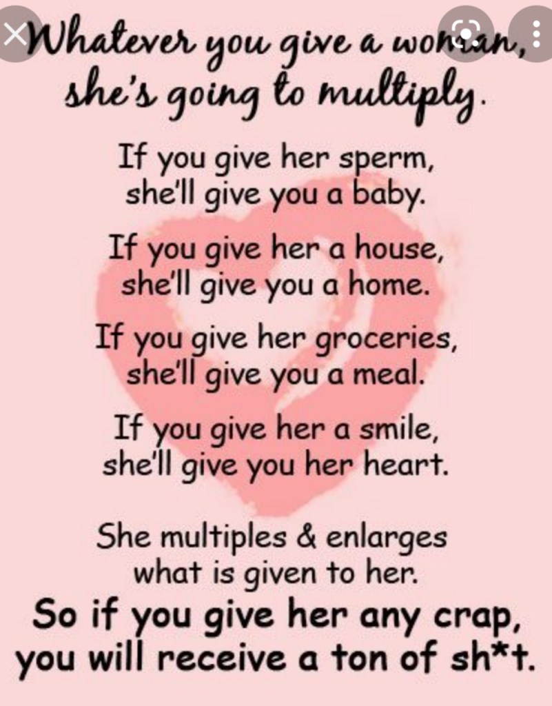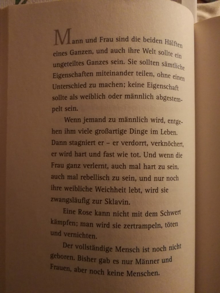 In dem wir die Frauen gegen die Männer aufhetzen und die Partnerschaft und die Gemeinschaft der Familie zerstören, haben wir eine kaputte Gesellschaft aus Egoisten geschaffen, die arbeiten (für die angebliche Karriere), konsumieren (Mode, Schönheit, Marken), dadurch unsere Sklaven sind und es dann auch noch gut finden.”