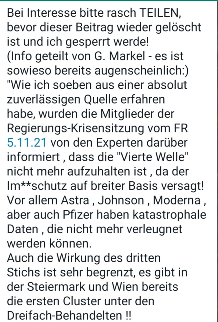 IHR KÖNNT DAZU BEITRAGEN, diese wichtige Arbeit, die die relevantesten Fakten, Daten und Argumente rund um die Covid-Maßnahmen und Impfungen zusammengefasst haben, ZU VERBREITEN. Vielen Dank! 🙏